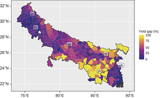 Figure 4 District-wise yield gap as percentage of actual yield.
